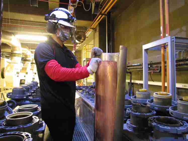 PG国际将废弃物转化成有效的工业或民生原物料,,,,图为废铜液淬炼后再制成纯度极高的铜管