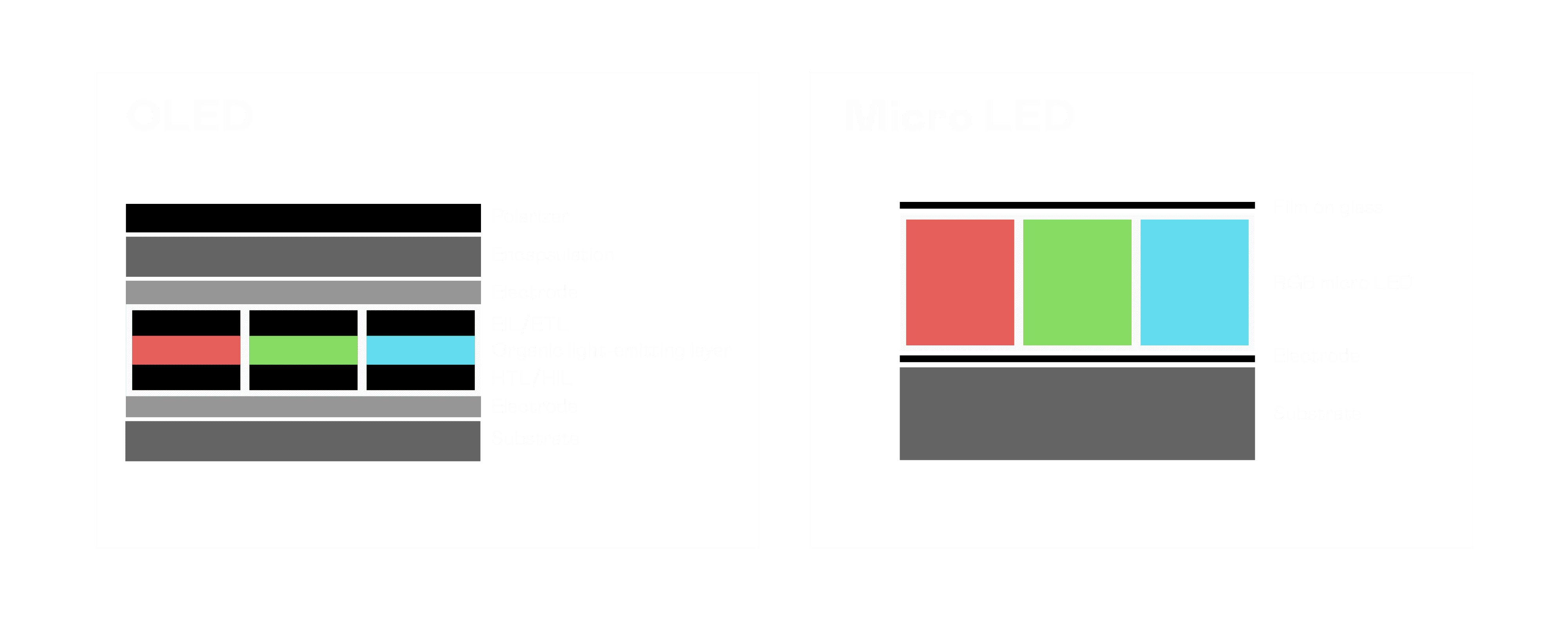 以 LED 做为显示画素,,可让 LED 的发光效率发挥到极致,,从而让显示器具备优异的亮度表现,,不论是在户外或室内,,,,均具备出众的显示效果。。。。同时,,,,与使用有机材料的 OLED 相比,,,LED 具备更稳定、、、寿命更长的特性,,不仅不会有画面烙印问题,,,而且更不容易出现故障、、坏点。。。